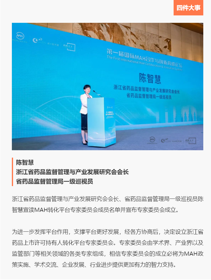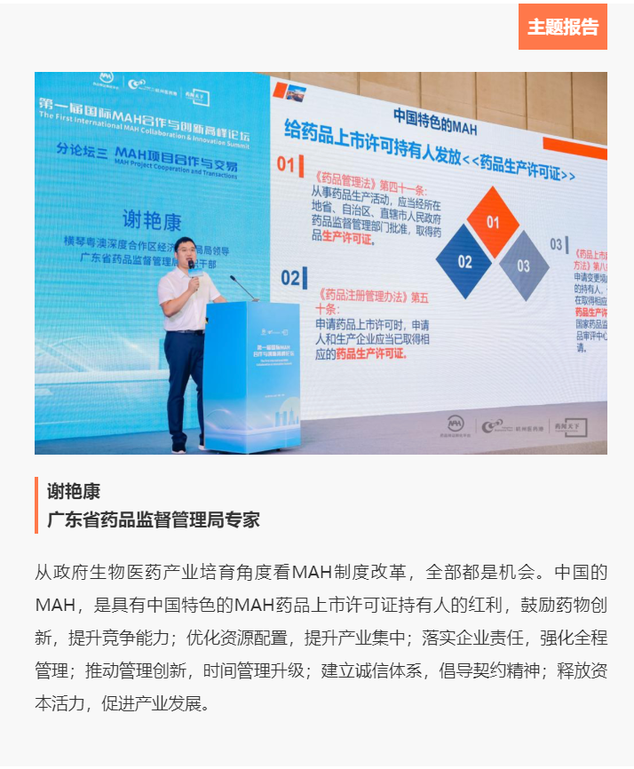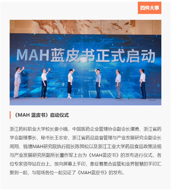 MAH制度的开展离不开专家智库的建言、企业的实践对接、人才的集聚研讨以及数据的共享融通。此次论坛开启了四件事关日后行业开展的重要事件。